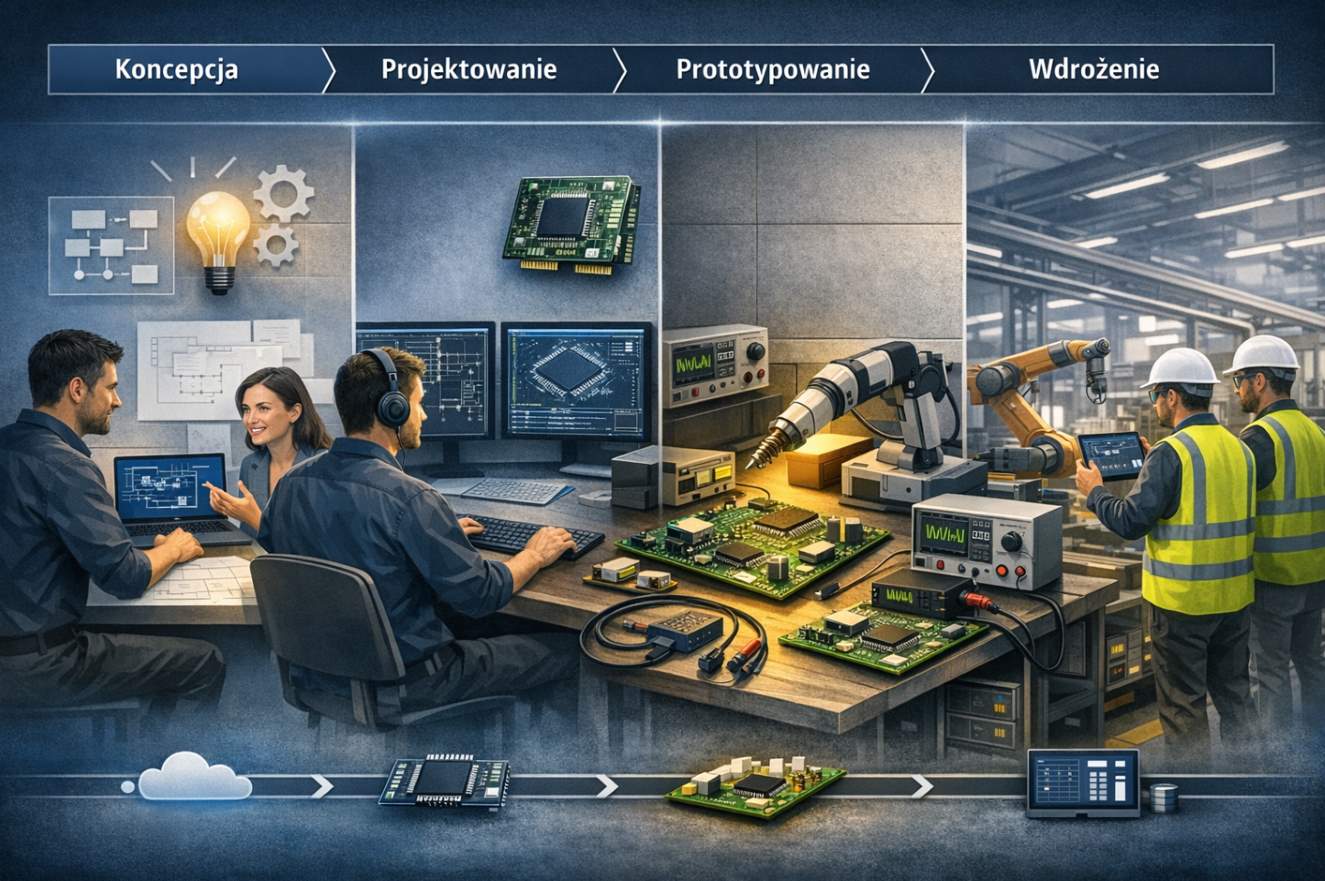 Wspólnie z naszymi klientami realizujemy dedykowane projekty elektroniczne i programistyczne. Zapewniamy profesjonalne wykonanie powierzonych zadań. Nasza oferta jest kompleksowa i obejmuje wszystkie fazy projektu, w całym jego obszarze. To klient decyduje w jakim zakresie korzysta z naszych usług