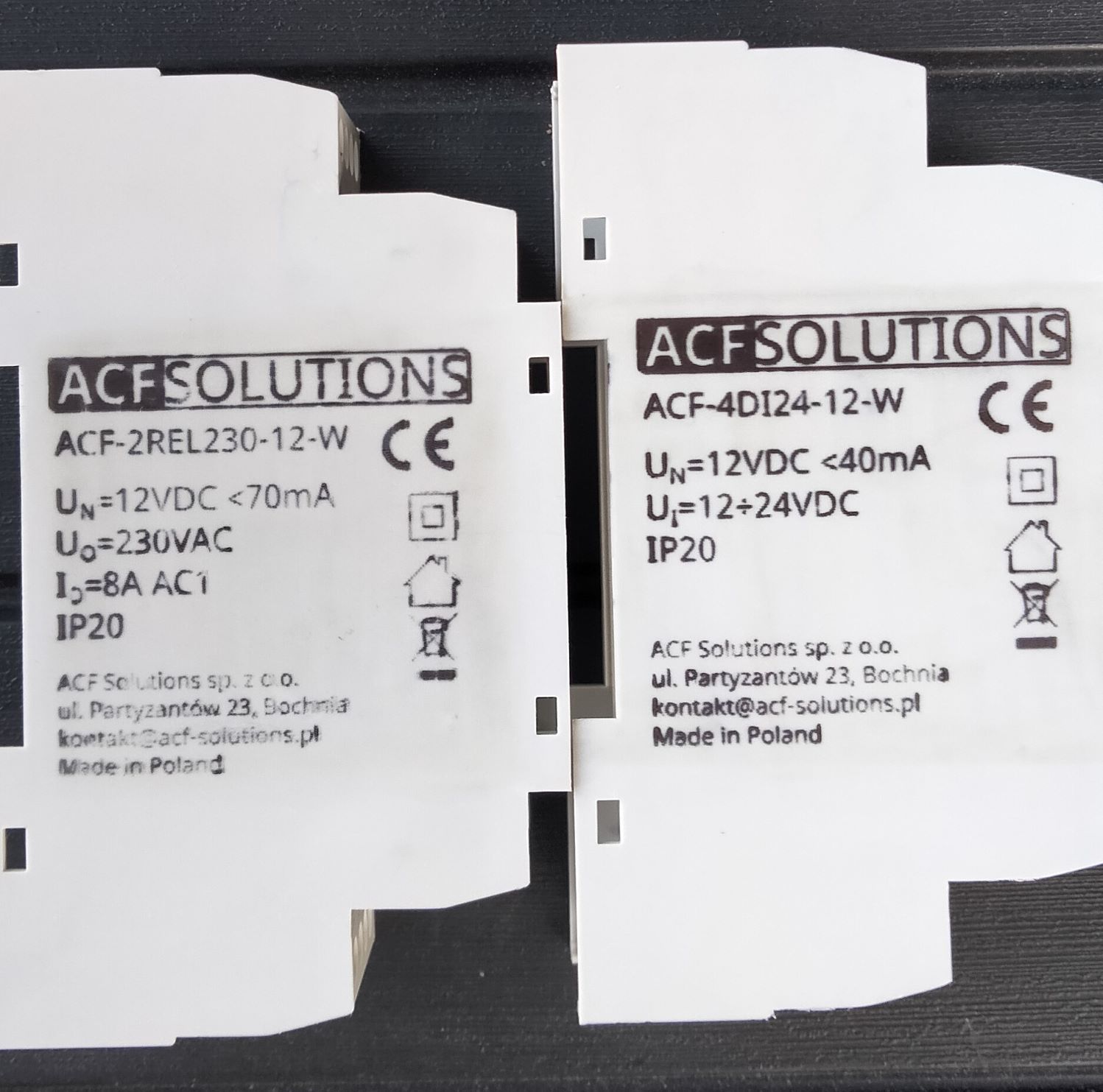 W jaki sposób należy nadać adresy modułom? Wielu instalatorów, zapewne pomyśli o dip-switch’ach – zestawie mechanicznych przełączników. Jest to powszechnie stosowana metoda polegająca na ustawianiu odpowiednich zworek w pozycji on/off . Każdy z przełączników odpowiada wartości logicznej 0 lub 1, na odpowiedniej pozycji w słowie binarnym. Kombinacja 5 takich przełączników pozwala zbudować wartość od 0 do 31. Nie inaczej jest w przypadku modułów systemu ACF. Jednak zrezygnowano z zastosowania mechanicznych przełączników, a lokalny adres zapisywany jest w pamięci nieulotnej (EEPROM) modułu. Programowanie adresu, czyli mapowanie jego 32 bitowego numeru seryjnego na 5-cio bitowy adres lokalny odbywa się za pomocą konfiguratora systemu, z poziomu aplikacji webowej. Takie rozwiązanie znacząco uprościło budowę modułu, a ponadto instalator ma podgląd stanu modułów w jednym miejscu z poziomu konfiguratora.